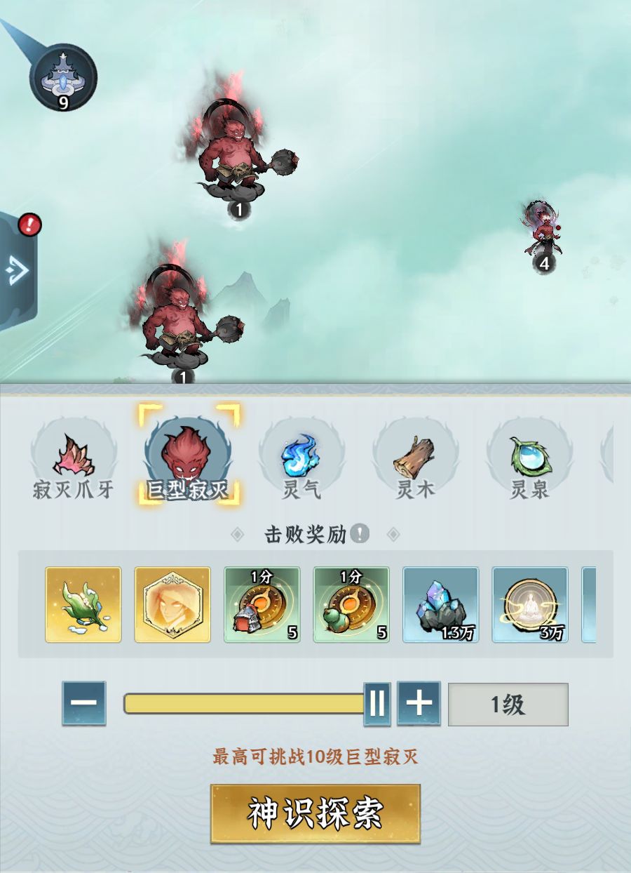 巨型寂灭是修仙界中最主要的共斗对象,可在大世界中使用神识探索搜索其所在位置。巨型寂灭共分为20个等级,挑战当前等级成功后即可解锁下一等级,等级越高难度越大,奖励也越丰厚。