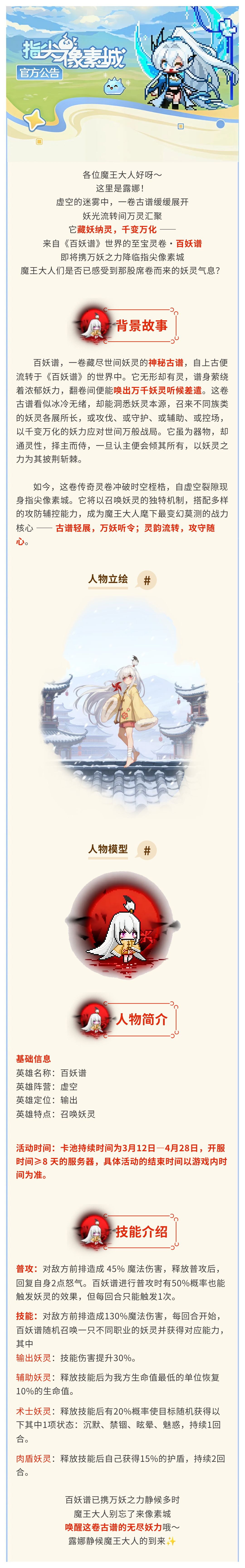角色预告| 千姿百态,亦善亦邪!灵卷百妖谱即将降临指尖像素城!