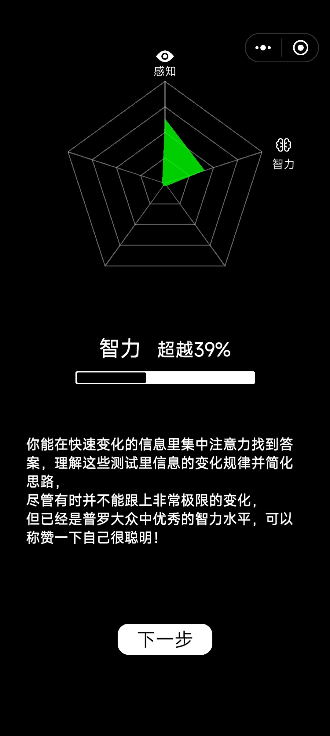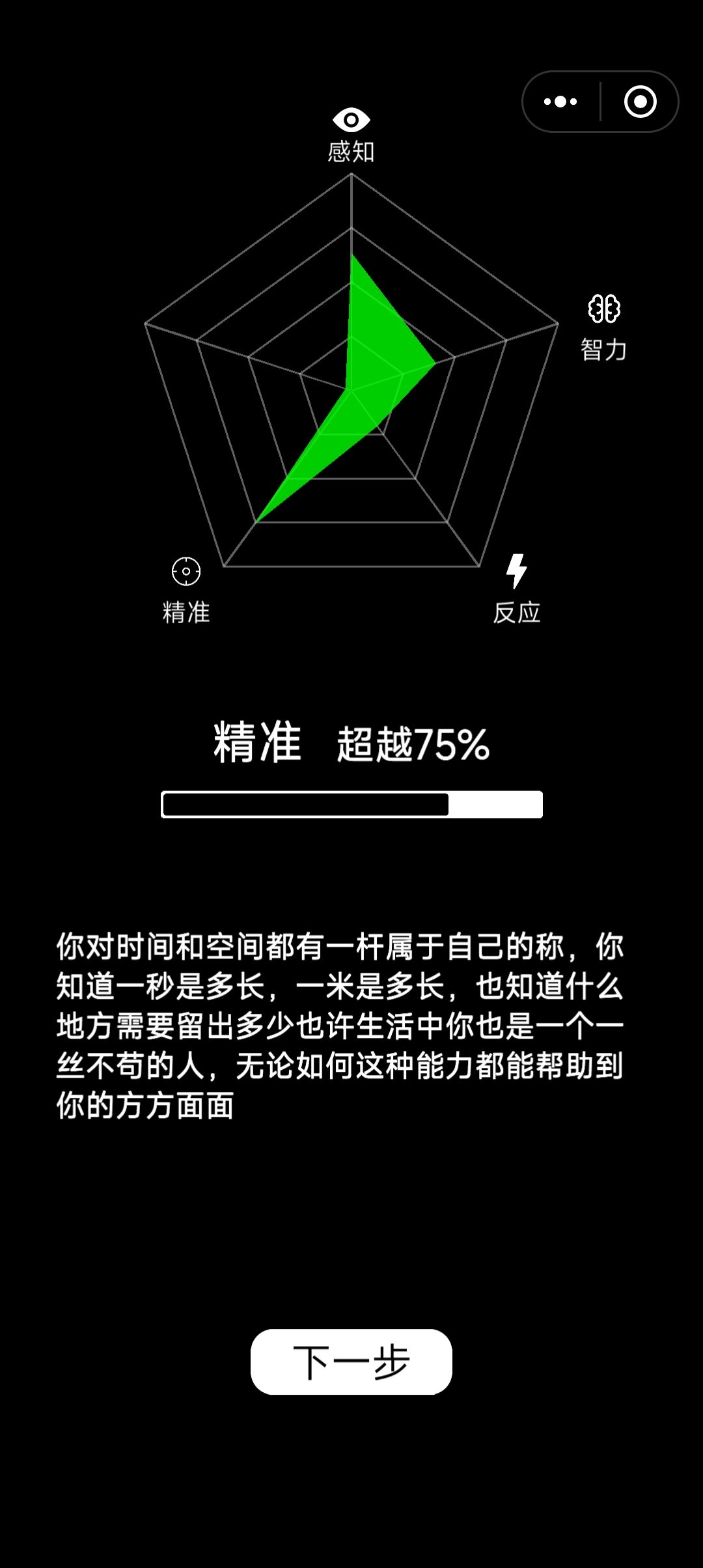 我的反应确实,一般玩游戏确实这个确实很能反应出来。这个反应能力也关于专注力啊,我专注力不好,所以呢反应也比较差。虽然这不能概括你全部的,但是也能检测出来一些什么。