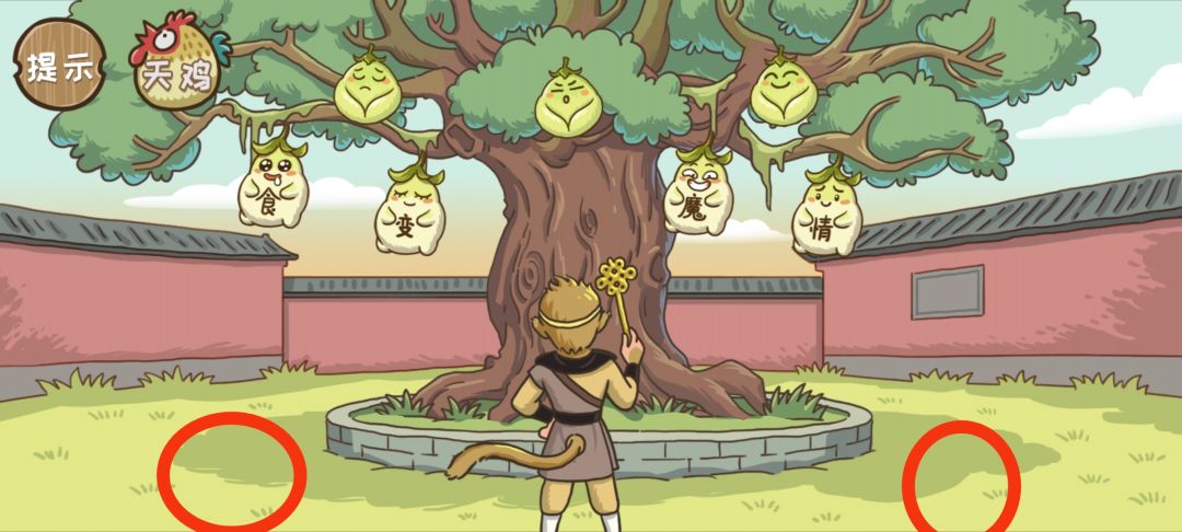 18点击3次金→如下图两个圆的地方反复摩擦(不用同时摩擦)→同时点住猴子和八戒,缓慢地向中间的狼移动