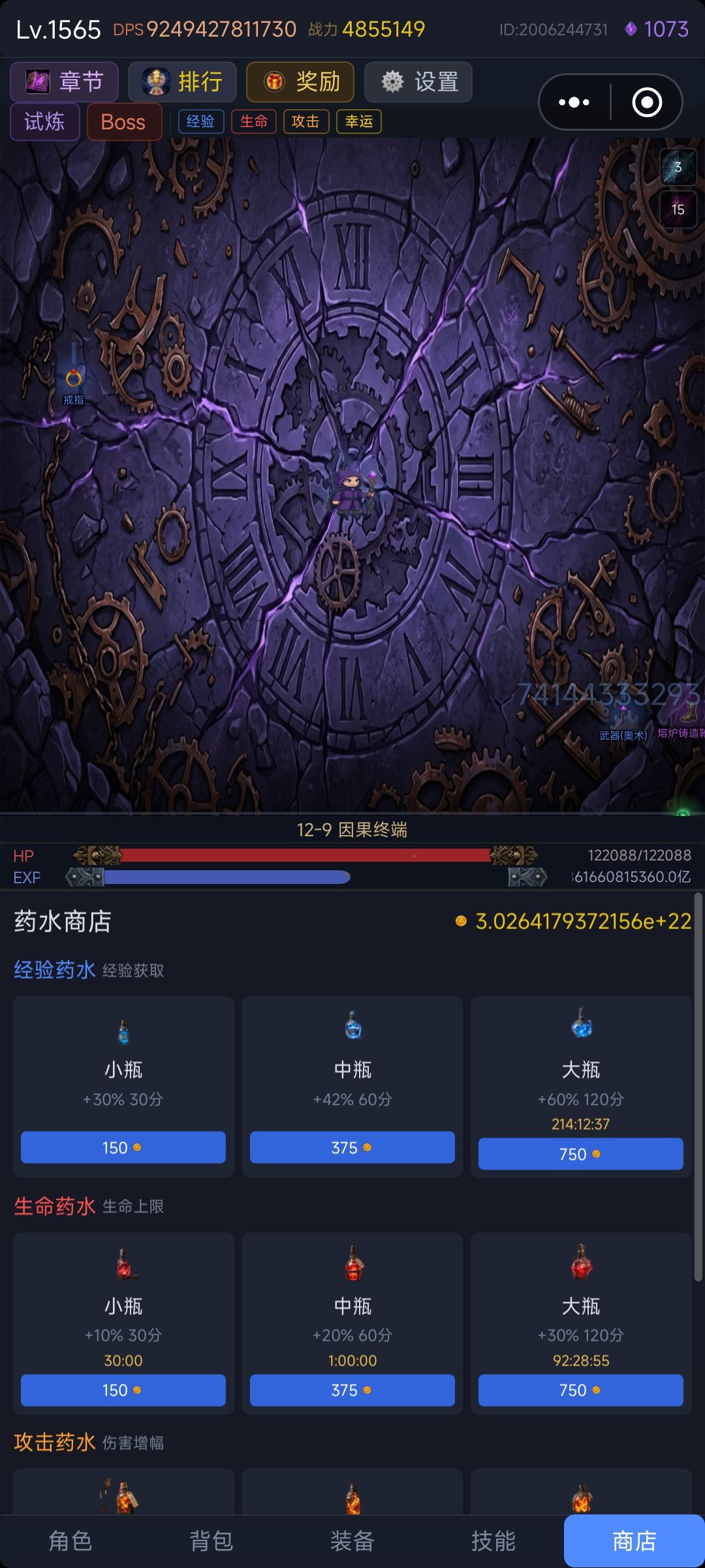 5.最后是我们的药水商店很重要,前期帮助我们快速升级,和一些攻击力,幸运加成等等。