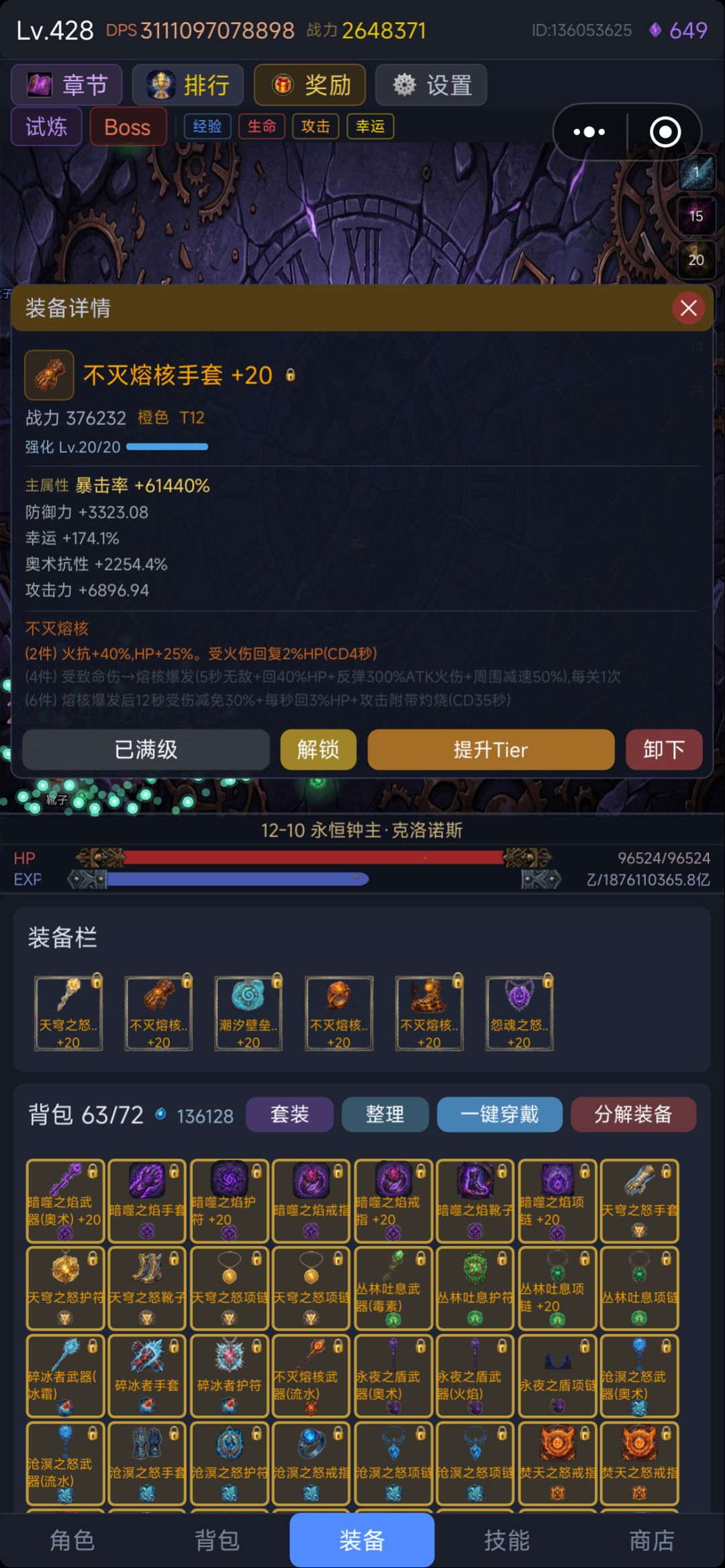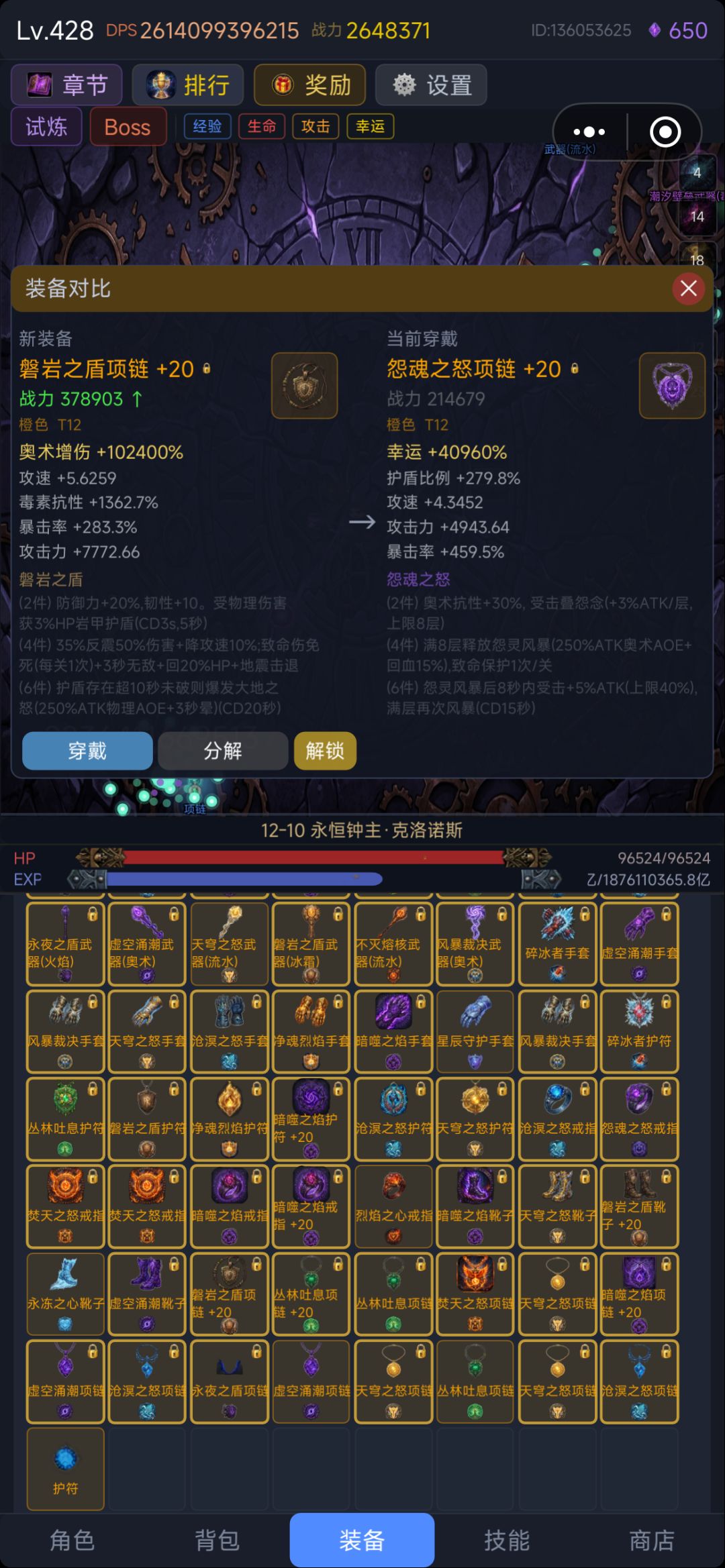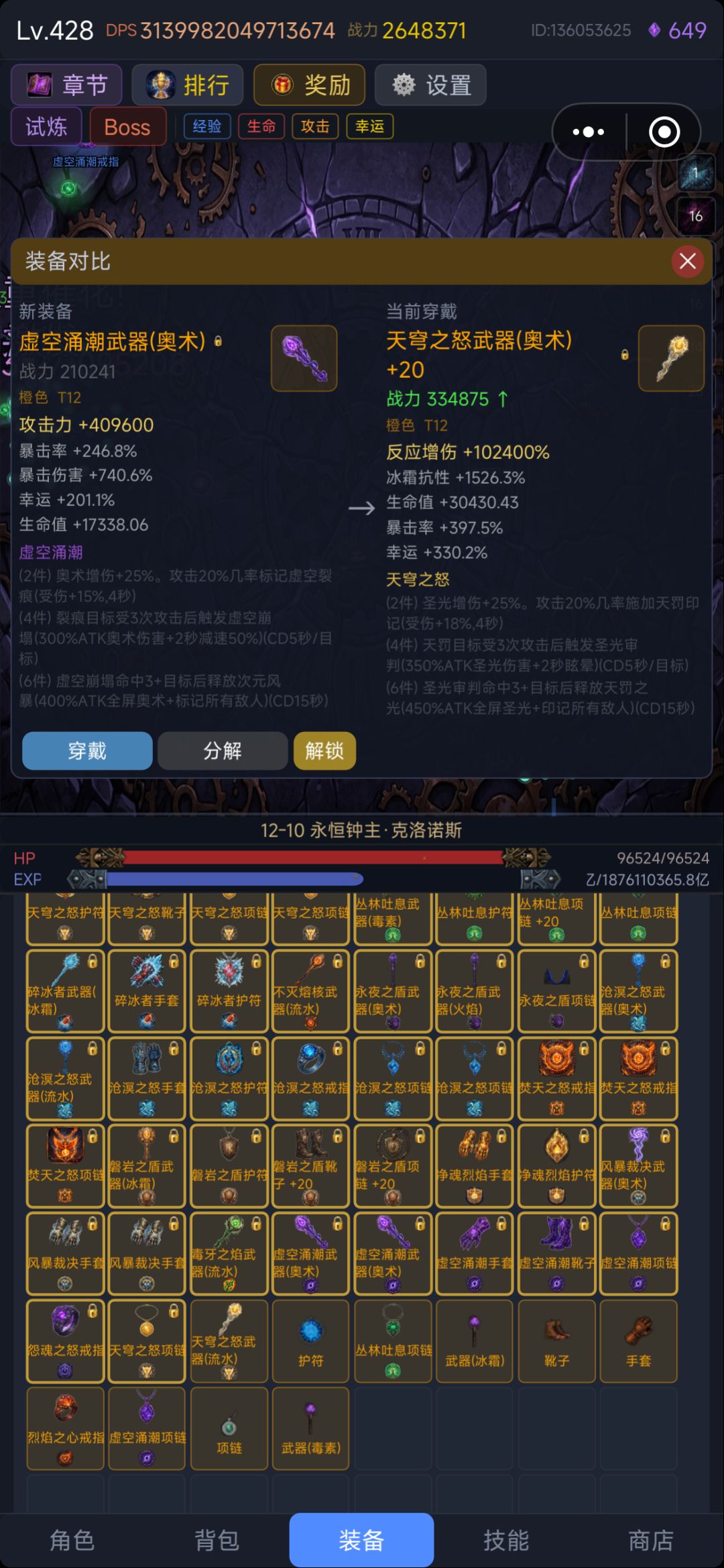 目前版本更新节奏快套装的收集难度较大,所以不用强求,散装就可以了。说到这里就不得不提之前版本的神级套装“沧溟之怒”了,集齐4件就可以秒天秒地了,因为4件特效是百分百输出,爬塔推图无压力一路冲,因为太超限被作者一刀砍成废铁,就不提了。正因为作者的不断更新及玩家的摸索着游戏也跟具可玩性。