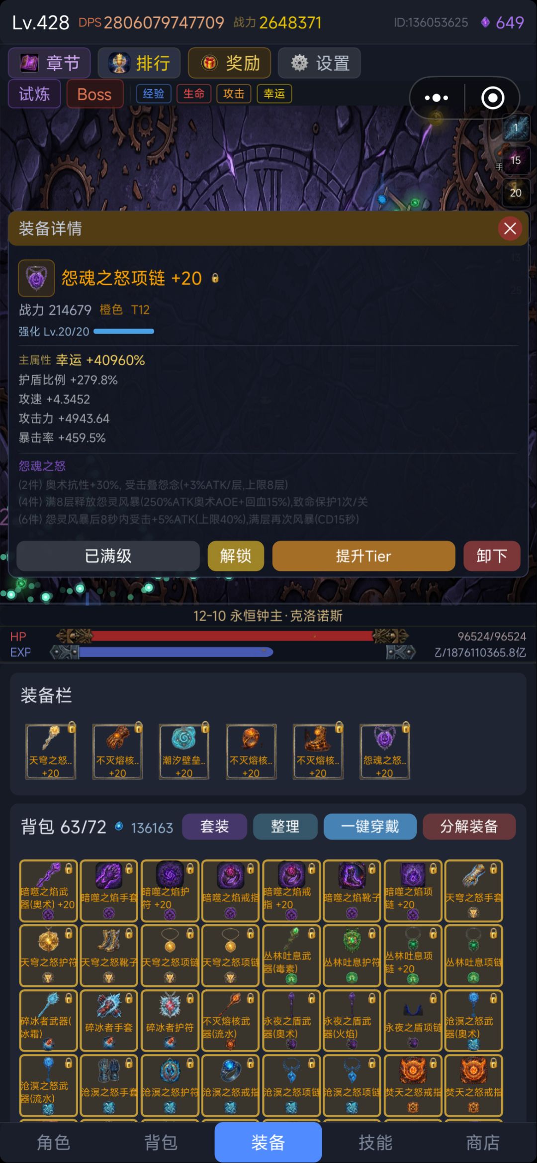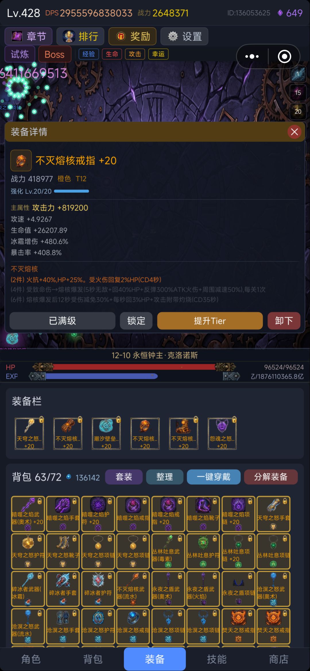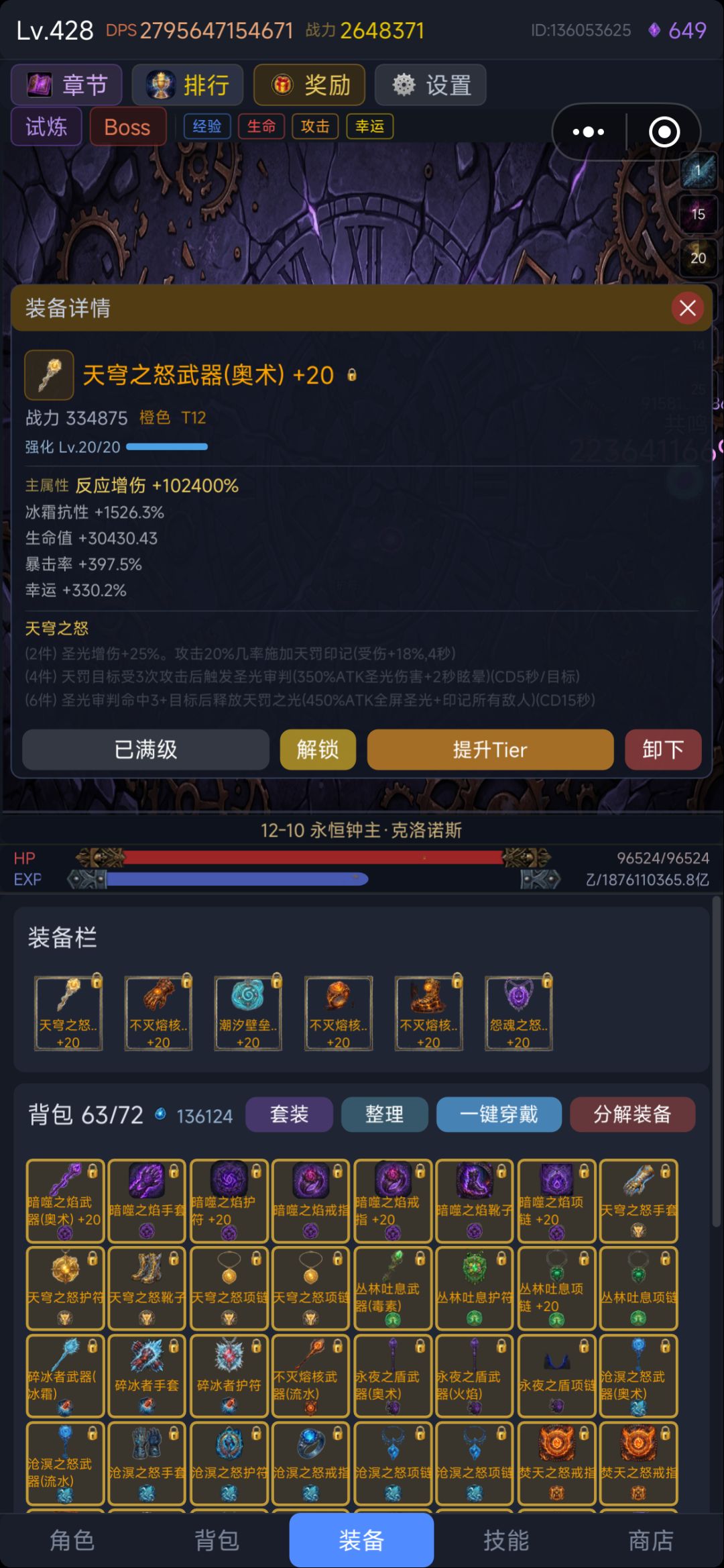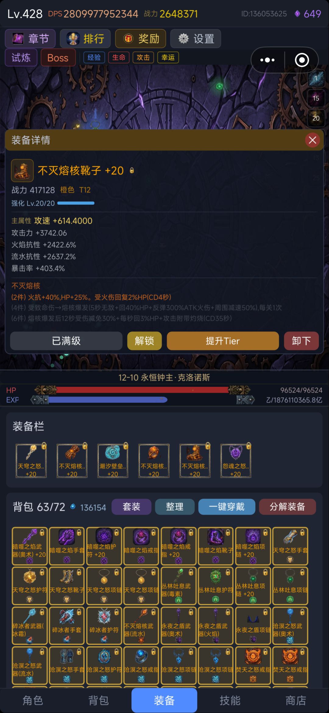 目前版本更新节奏快套装的收集难度较大,所以不用强求,散装就可以了。说到这里就不得不提之前版本的神级套装“沧溟之怒”了,集齐4件就可以秒天秒地了,因为4件特效是百分百输出,爬塔推图无压力一路冲,因为太超限被作者一刀砍成废铁,就不提了。正因为作者的不断更新及玩家的摸索着游戏也跟具可玩性。