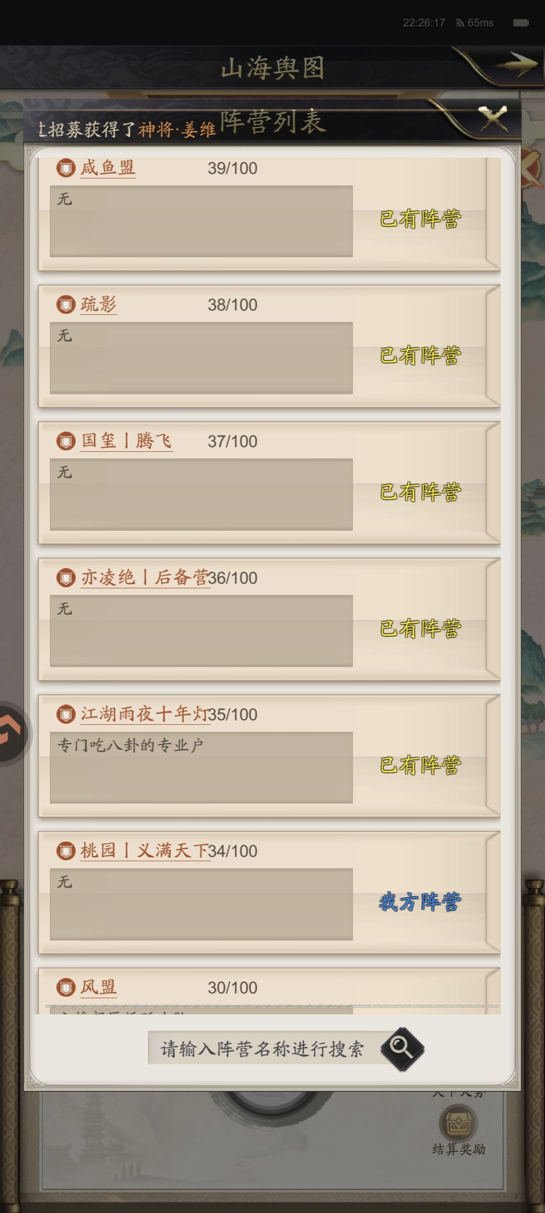 这次报名满号盟不少,出现了不少厉害的新盟,例如扶摇、虎啸、锦衣卫、其他很多盟不太熟悉,我们桃园这次准备混郊区,有34个号进本。期待能分到刘璋势力。