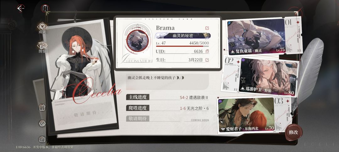 首先,测试期间全勤登录了,最终等级47级,主线也完整体验。很喜欢“红手套”和“幽灵”的故事,“红手套”最后法庭辩论非常有意思。