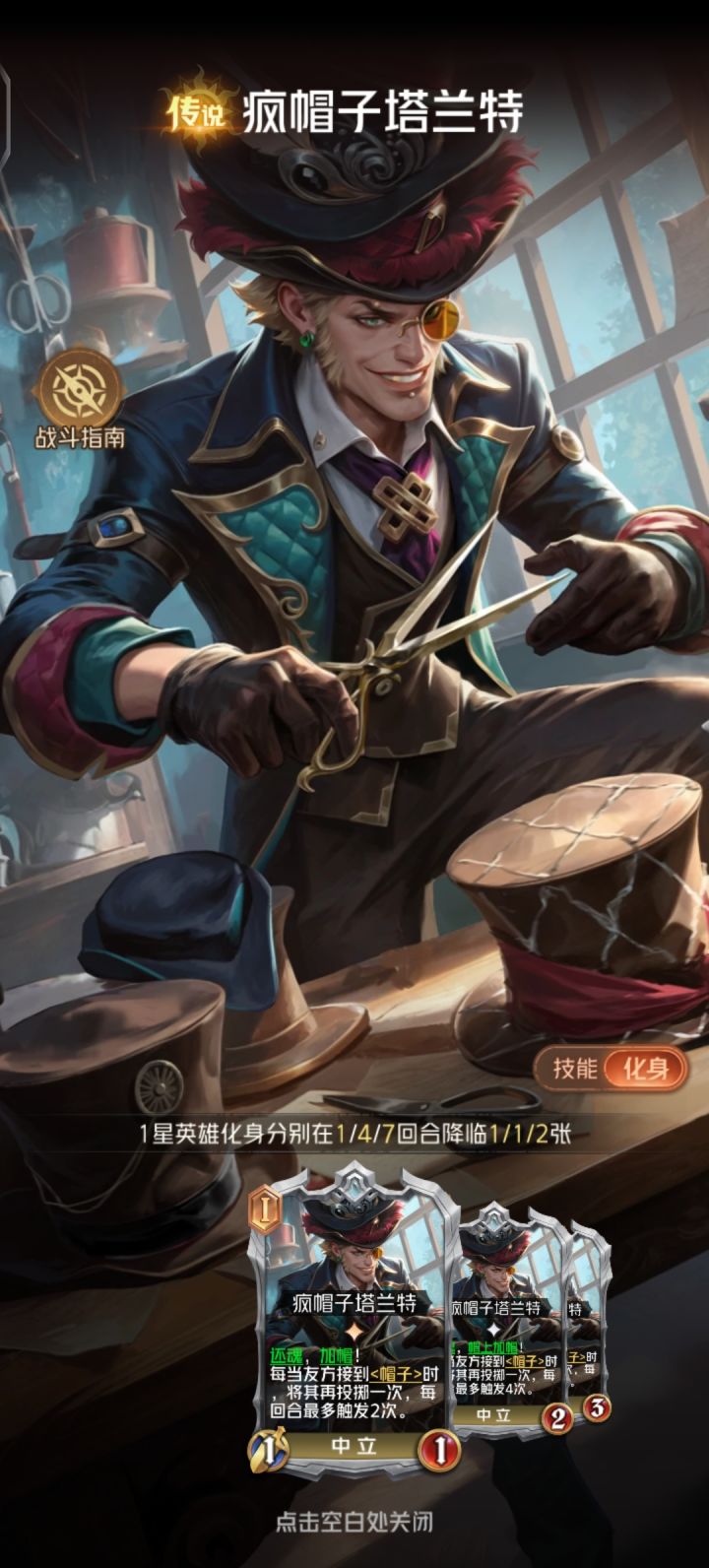 比如<疯癫之帽>:攻击时随机将自己与另一个友方的攻击力减半,然后将<帽子>随机投掷给另一个敌方或友方。交战2:立即攻击一次。