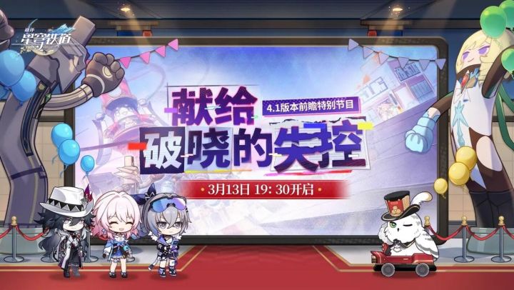 《崩坏:星穹铁道》4.1版本「献给破晓的失控」前瞻特别节目定于2026年3月13日19:30直播。本次直播将同步放出300星琼兑换码,预约直播最高可获10连抽奖励。三月七、银狼及新角色不死途的声优将作为嘉宾亮相,其中银狼CV的登场引发玩家猜测,可能暗示该角色在后续版本中迎来专属剧情或形态升级。