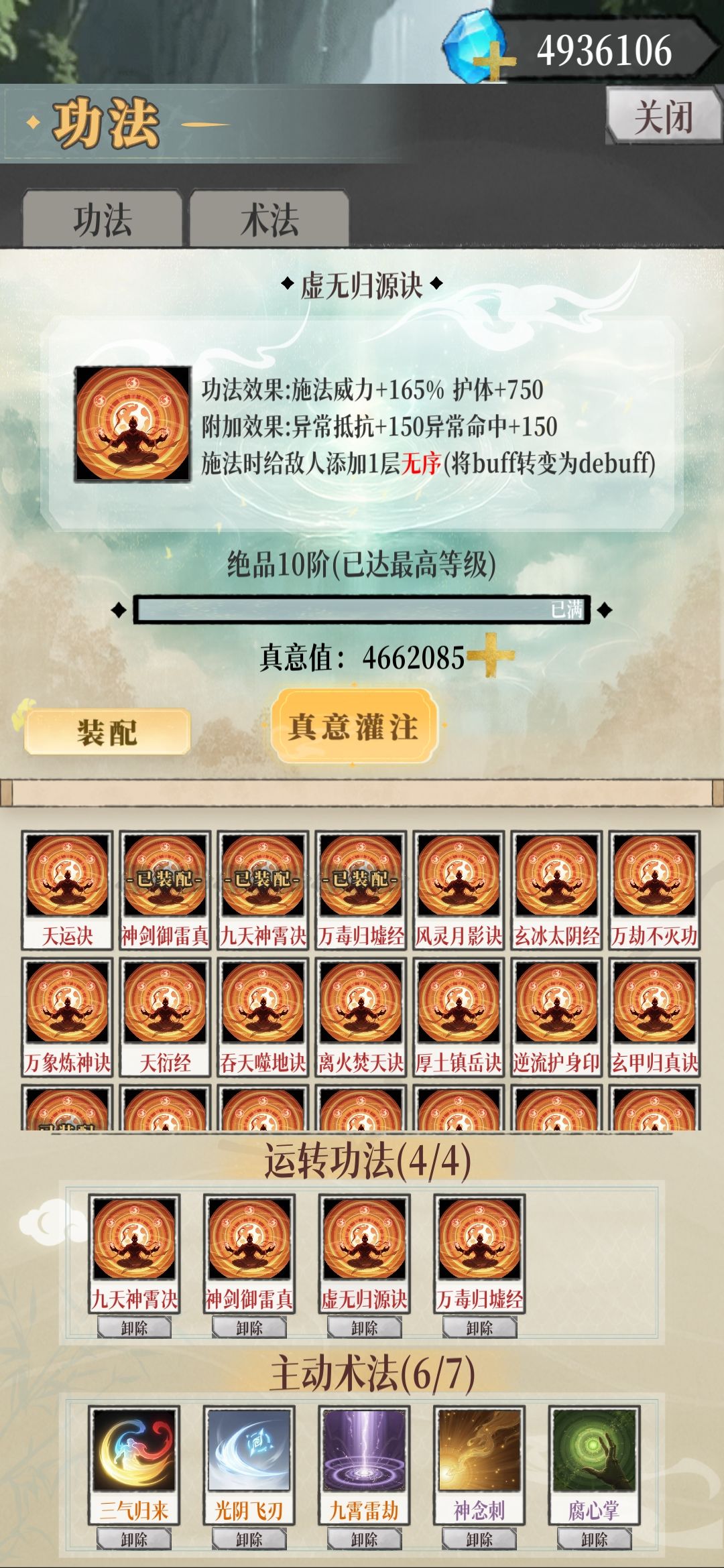【运转功法】:九天神霄➕神剑御雷➕万劫不灭➕万毒归墟(功法在化神拍卖会购买)