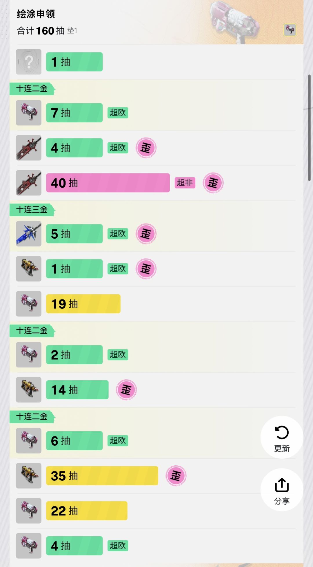④再下汤汤专武池,这次不够欧,18次十连才出3把,下个版本买礼包继续。