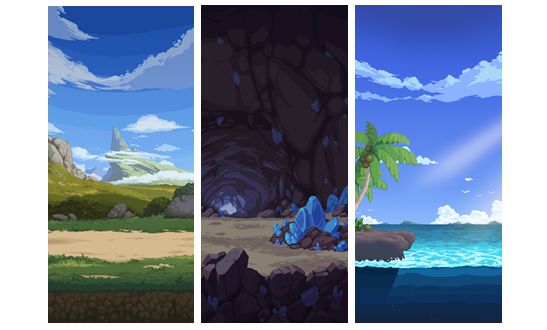 对吧!对吧!是我们之前完全没有去过的全新地貌呢!既有浸泡在清风的原野,也有阳光明媚的海边,还有满满都是宝石的矿洞!