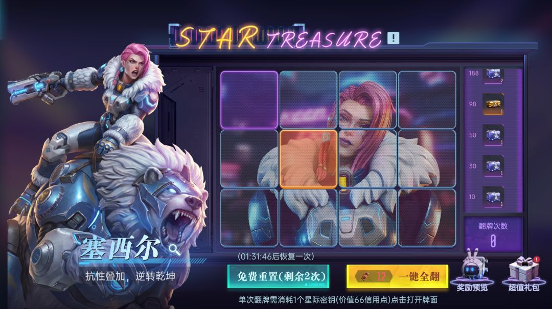 S7的星际宝藏依然需要星际密钥进行抽取,一个星际密钥价值66信用点,一轮翻牌需要12个星际密钥,实际花费的信用点与之前一致。