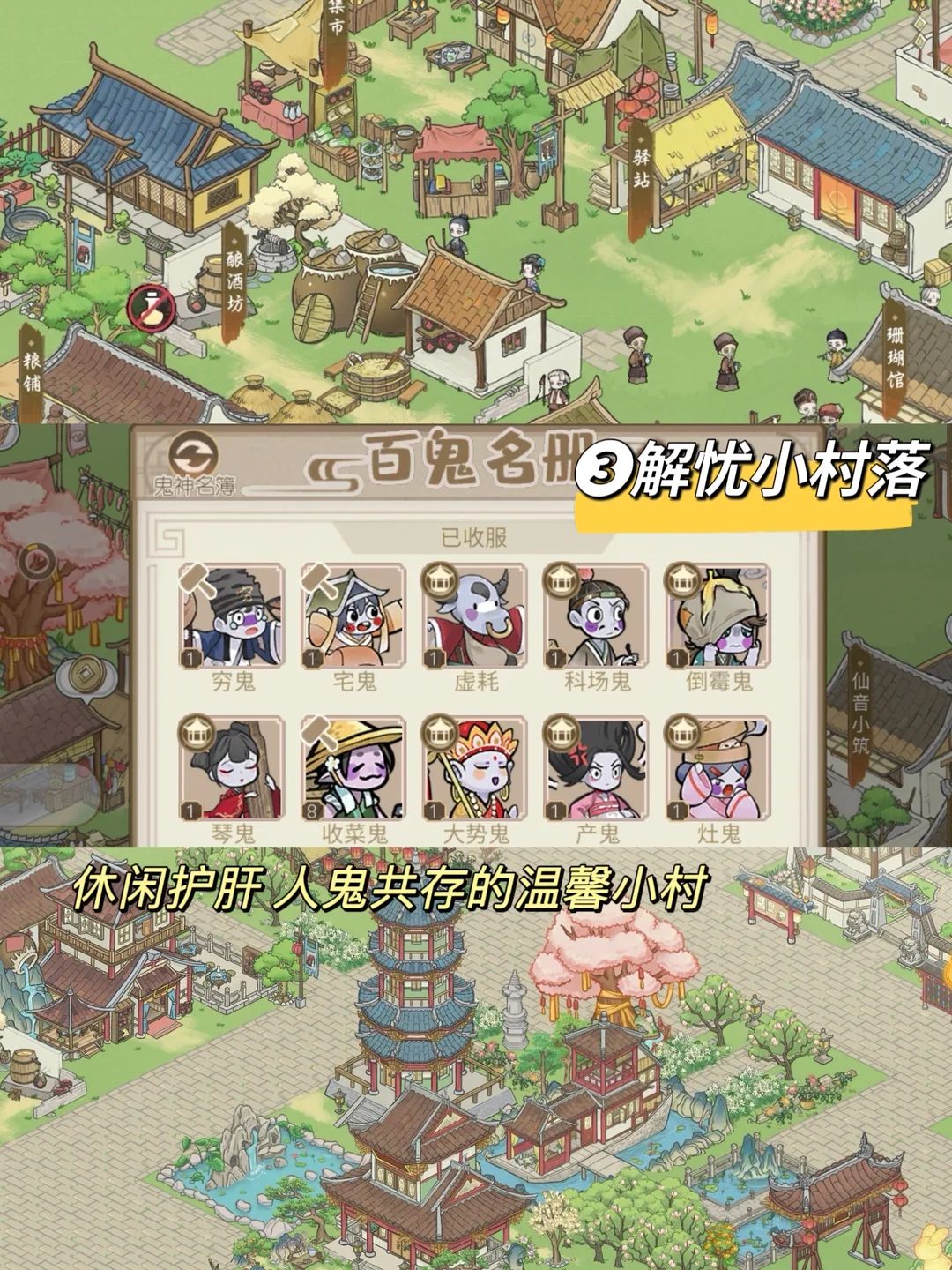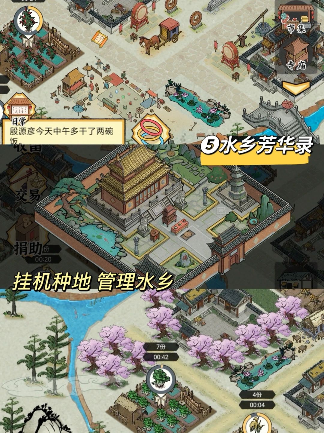 水墨画风格挺漂亮,养殖种田+管理居民日常,模块可以个性化装饰但是位置不能移动,很适合不喜欢费脑子自己规划摆放的