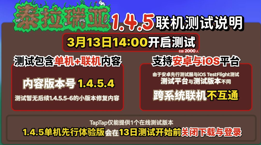 泰拉瑞亚手游1.4.5版本官宣3月20日上线,联机测试同步开启
