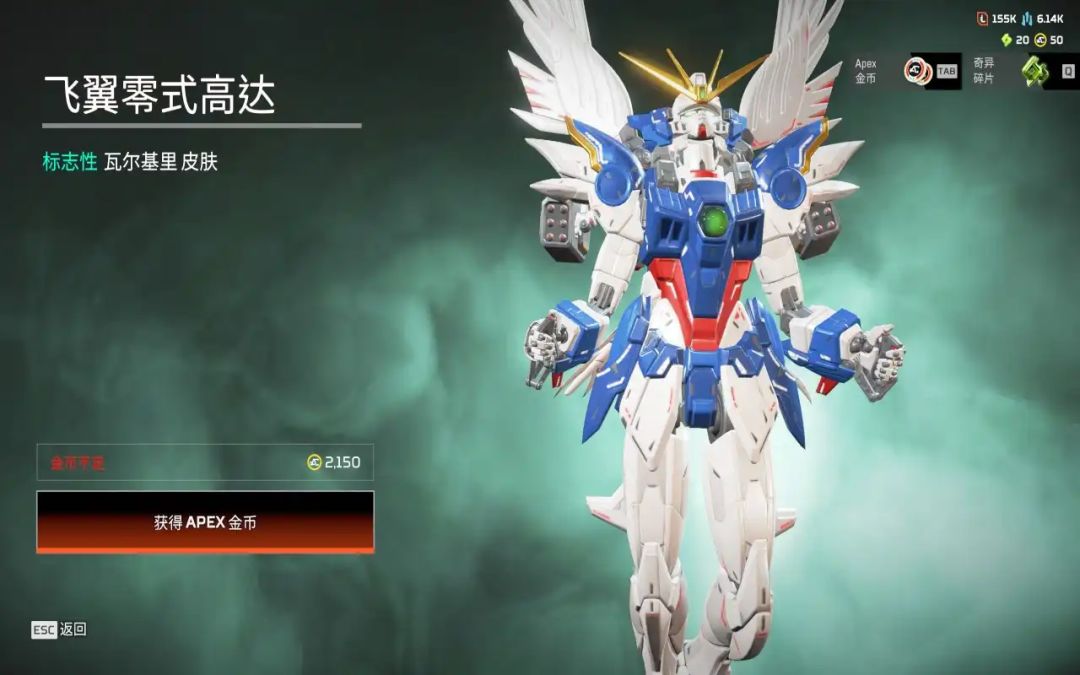 最近,apex与高达的联动活动也是正式开启了,正所谓外行看热闹内行看门道。即使你此前并没有看过高达系列作品,也会被其帅气的外观所折服。不少玩家都表示这是目前联动质量最高的一套皮肤。但是只有真正懂高达的玩家才知道,本次联名诚意到底有多高,此次联动的皮肤全都是高达系列热门或者新作人气机,双厨这波真狂喜了。本期,我就来给不太了解高达的小伙伴讲一下,此次高达联动活动到底有多少联动彩蛋,各种高达皮肤又有什么背景故事? 此次联动分别联动了八位高达,分别是瓦尔基里的飞翼高达零式、变幻的艾比安高达、动力小子的GQuuuuuuX、密客的自由高达、亡灵的地狱死神高达、直布罗陀的柯西高达和幻象的命运高达。每位高达的特色都几乎能与apex中的角色对应,看得出来,apex策划在联动之前没少恶补高达动画。1.瓦尔基里的飞翼零式本次联动的核心高达,外卡模式的破坏步枪以及传家宝光束军刀配色,都属于飞翼零式的武器配置。它是《新机动战记高达W 无尽的华尔兹》中登场的试作型可变MS(机动兵器Mobile Suit),可以变化为MA(非人型战斗机器,可以变为飞机模式),它的特点是标志性天使翼+纯白蓝机机甲,并且飞行姿态与瓦尔基里的飞行技能高度契合,这款高达给到瓦尔基里实至名归!