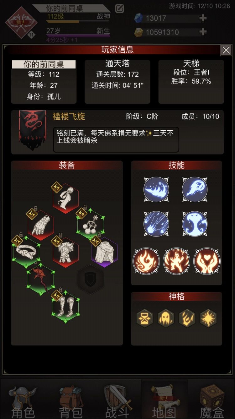大家好,我是来自8区的一位匿名玩家(?),目前十一转通天塔172层(晚于开服一周入坑)。正好最近又到了等神位的长草期,闲来无事和各位分享一下魔龙燃烧流的心得~