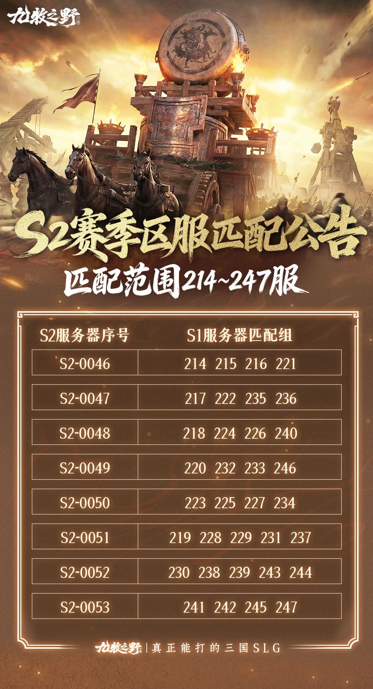 《九牧之野》S2赛季部分区服匹配分组公示