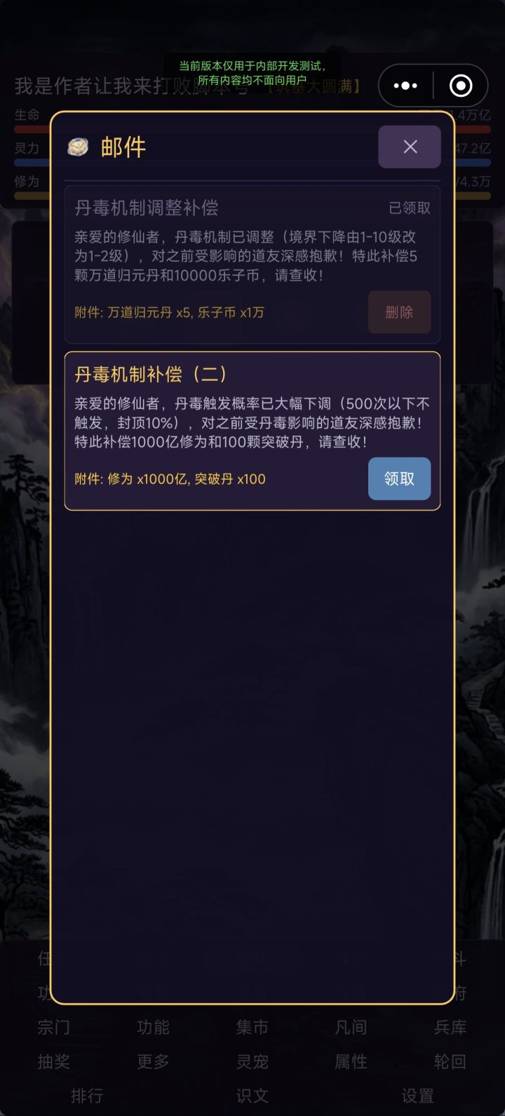 增加了小游戏“识文”,正确诗词填空可以获得突破丹和赌坊次数~