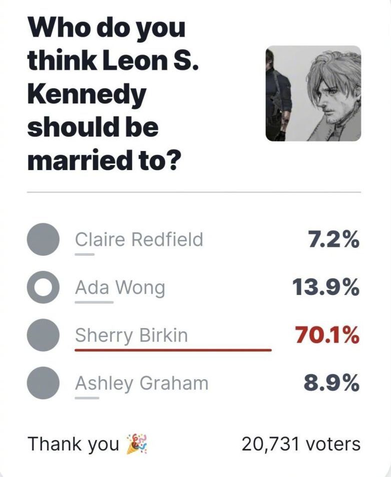 不过这次的原因有些令人哭笑不得,原因是知名游戏媒体IGN搞的一项投票,让玩家猜测最适合成为里昂妻子的角色是谁