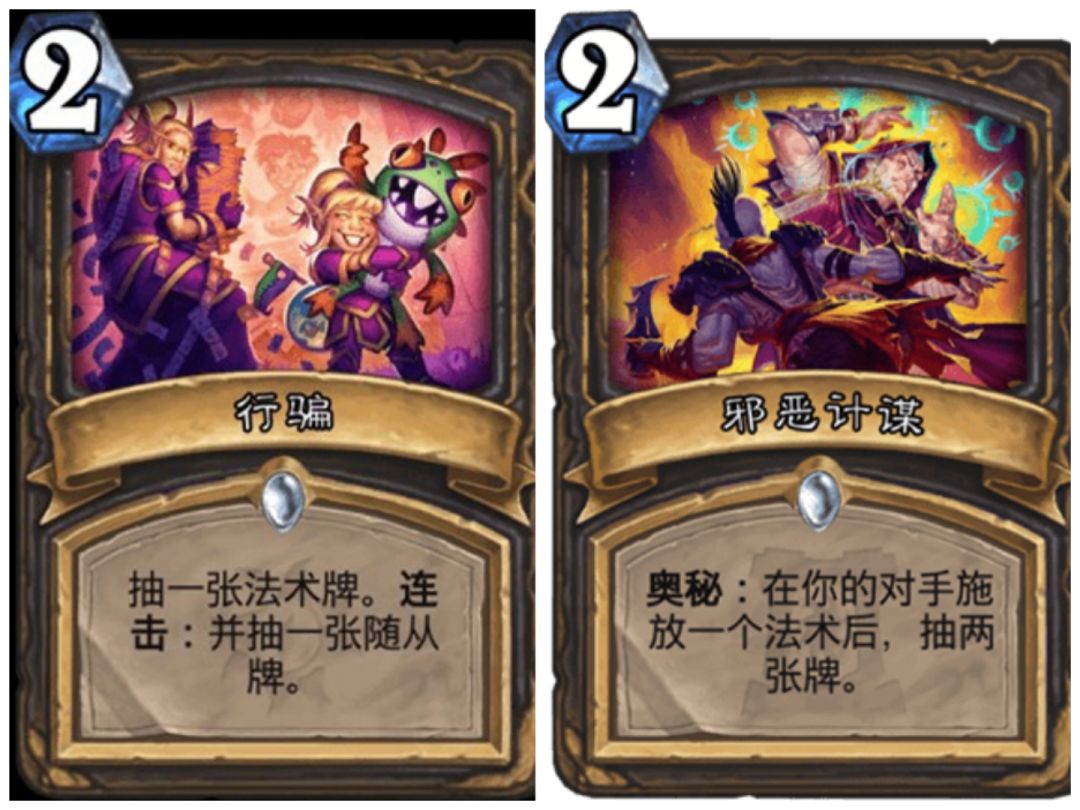 唯二两张前期过牌卡,这套卡组中资源非常多以至于过牌哪怕多加一张就中期容易资源溢出爆牌。。。这两张都是较优质的低费过牌,节奏恰到好处