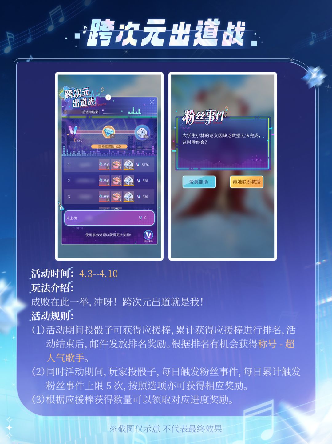 更有星谱共创、舞蹈特训、跨次元出道战、歌手巡演等丰富玩法等你挑战~
