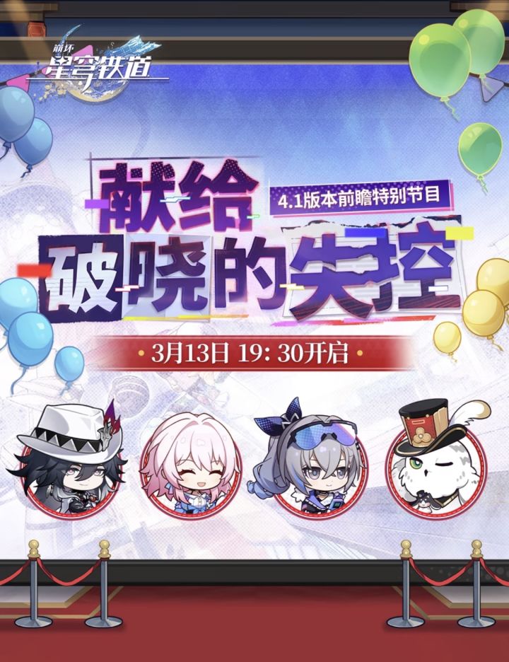 《崩坏:星穹铁道》最近公布了4.1版本前瞻特别节目的消息,节目名称叫做「献给破晓的失控」,预计将在3月13日19:30正式播出。按照以往的惯例,前瞻节目通常会带来新版本的主要内容爆料,比如新角色、新活动、新剧情以及各种福利兑换码,所以不少玩家已经开始提前蹲直播了。