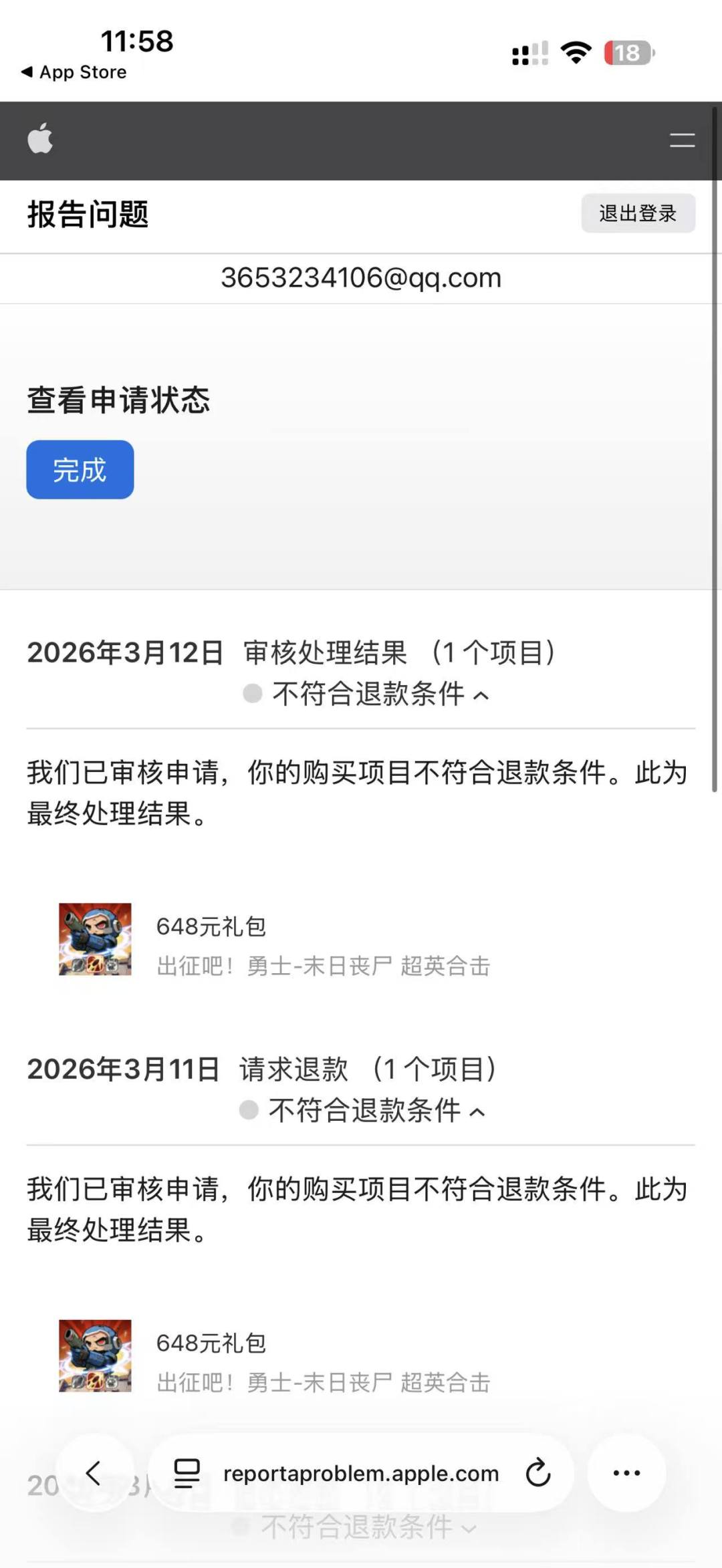 扣了648你们一直不处理,游戏道具也不放发放一直让我联系苹果退款,
