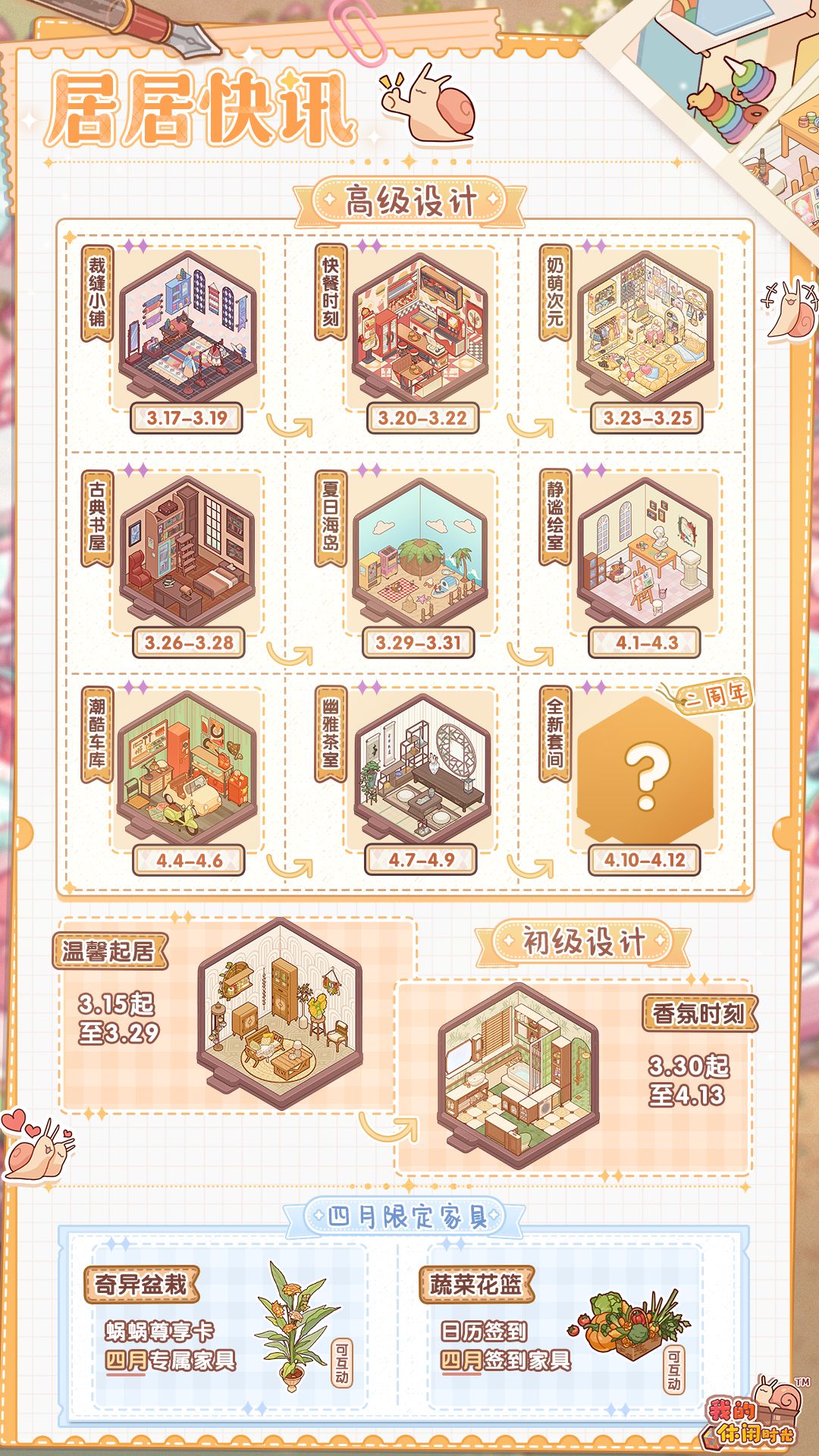 从本期开始新增下一个月的日历签到家具及蜗蜗尊享卡限定家具展示