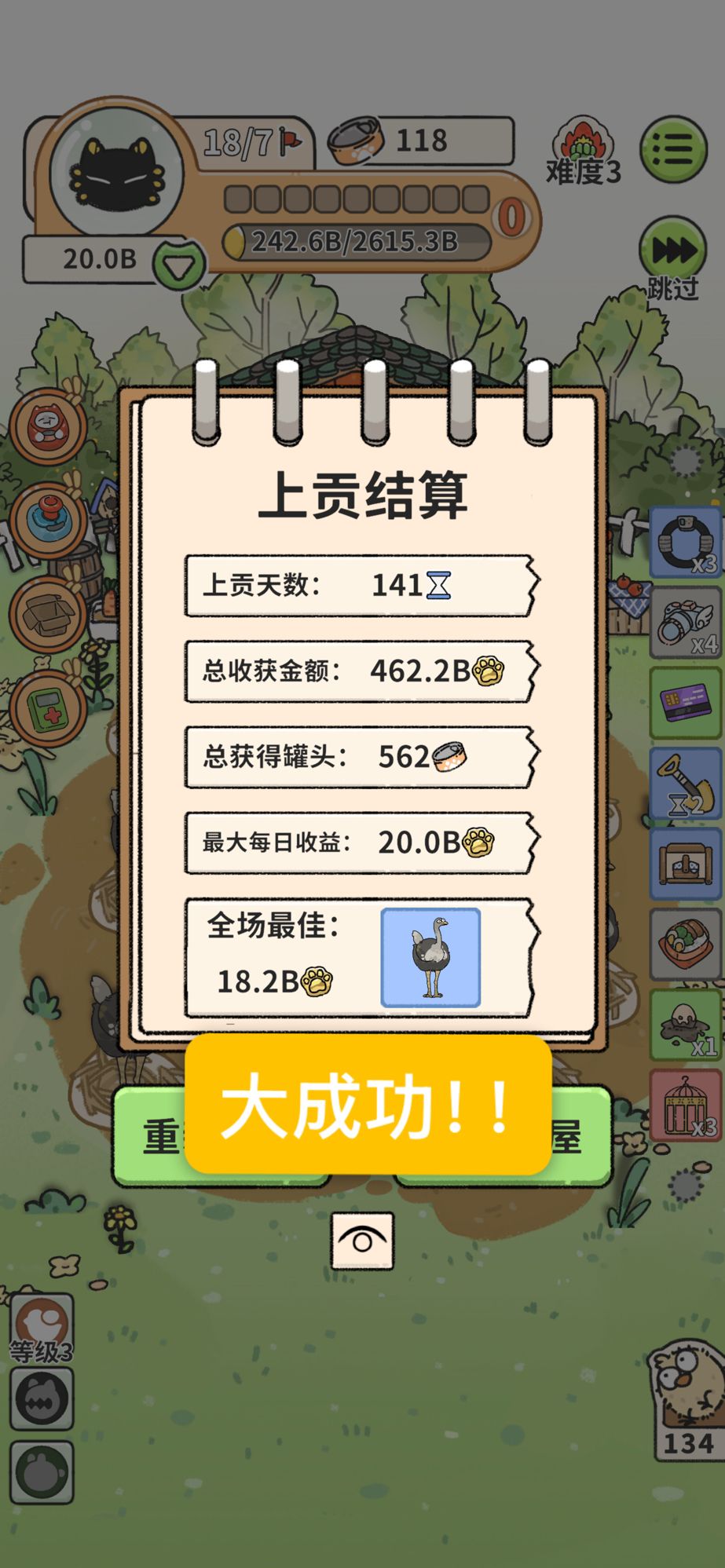 前期不要花太多罐头,留到中期控制鸵鸟数量用。