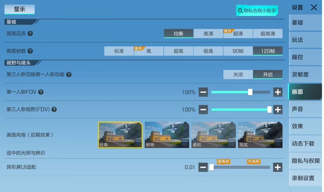 可在【设置】-【画面】-【基础】画面品质设置中选择【均衡】,画面帧数查看是否有【120 帧】选项,出现该选项,恭喜您,即可开启 120 帧超流畅游戏之旅。