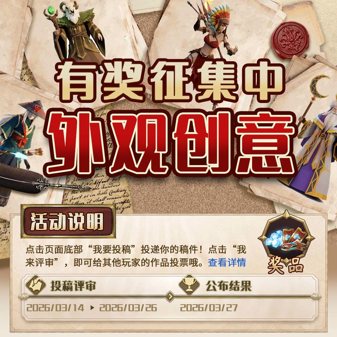 本次创意比拼使用的英雄范围限定为禁卫军、神射手、游学者、角斗士。