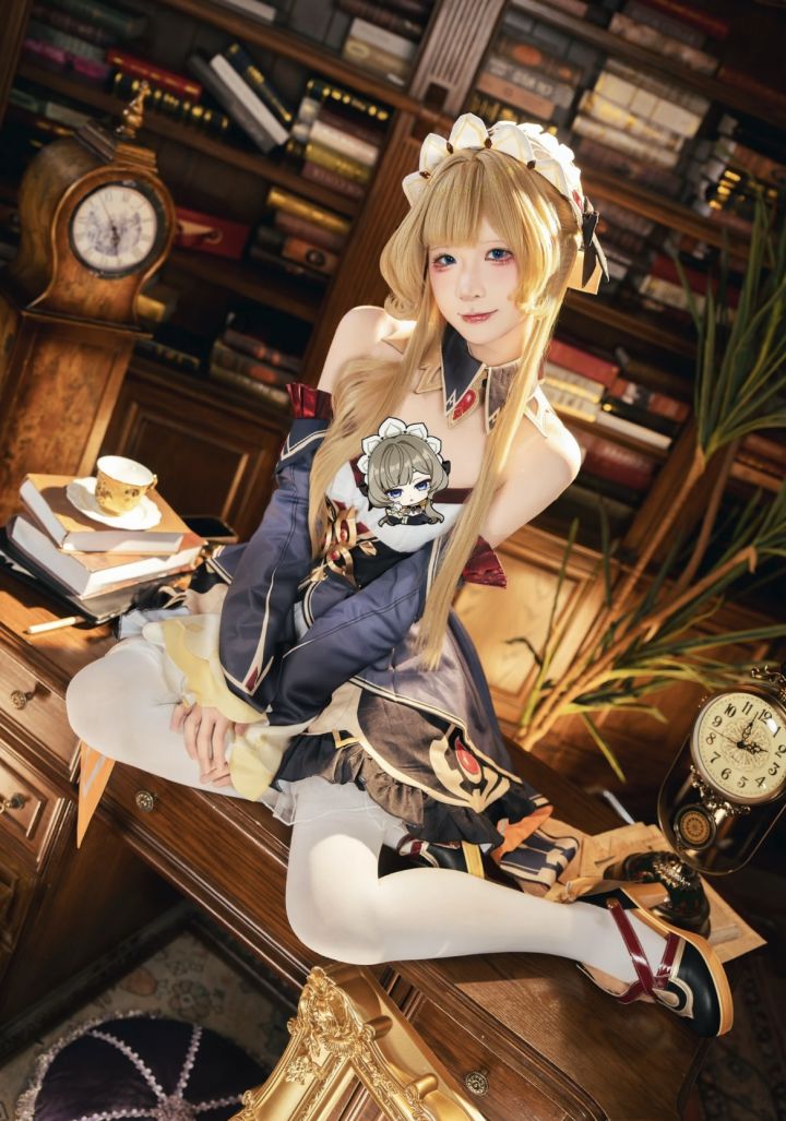 这位coser完美复刻了愚人众执行官「木偶」桑多涅的娇俏与矜贵。浅金色双马尾垂落肩头,搭配精致的女仆风头饰,将角色的人偶感与贵族气质融合得恰到好处。服饰细节还原度极高,藏青与米白的撞色、金边纹饰与红色点缀,既呼应了角色设定,又凸显出优雅的宫廷感。她抬眸时的澄澈蓝瞳与微扬的嘴角,将桑多涅外表娇憨、内心疏离的反差感演绎得淋漓尽致,仿佛从提瓦特大陆的书斋中走出,带着操控人偶的神秘与慵懒,每一个姿态都藏着执行官的隐秘气场,让观者瞬间坠入那个充满机械与浪漫的奇幻世界。 #原神 #原神月之五 #原神创作者激励计划