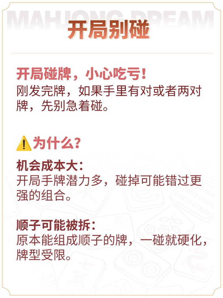 开局、尾局、听牌时都要谨慎碰牌 ⚠️