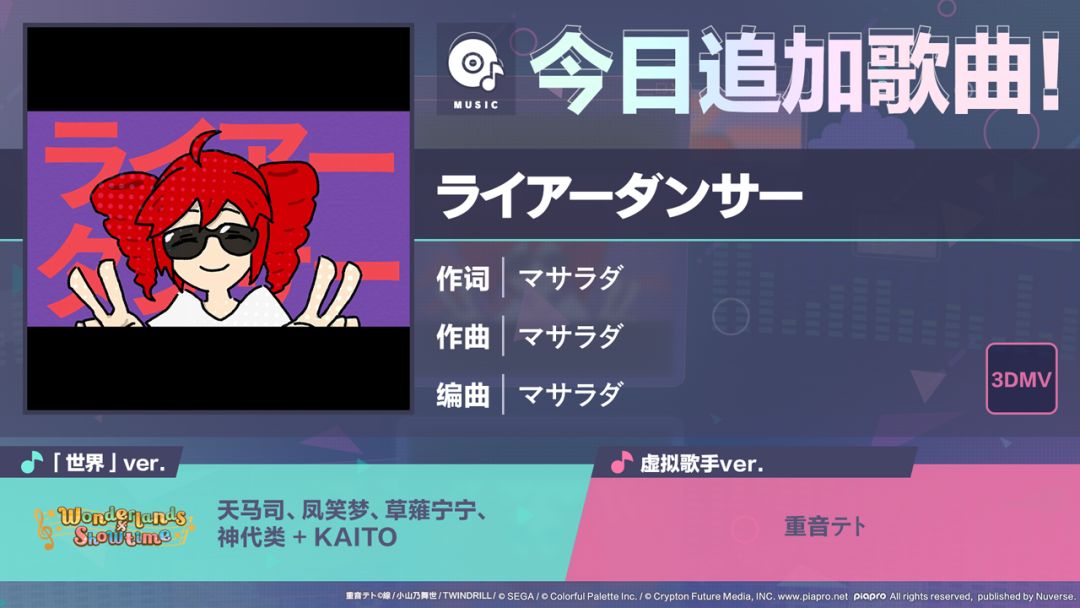 3/17 15:00起,追加歌曲《ライアーダンサー(Liar Dancer)》!