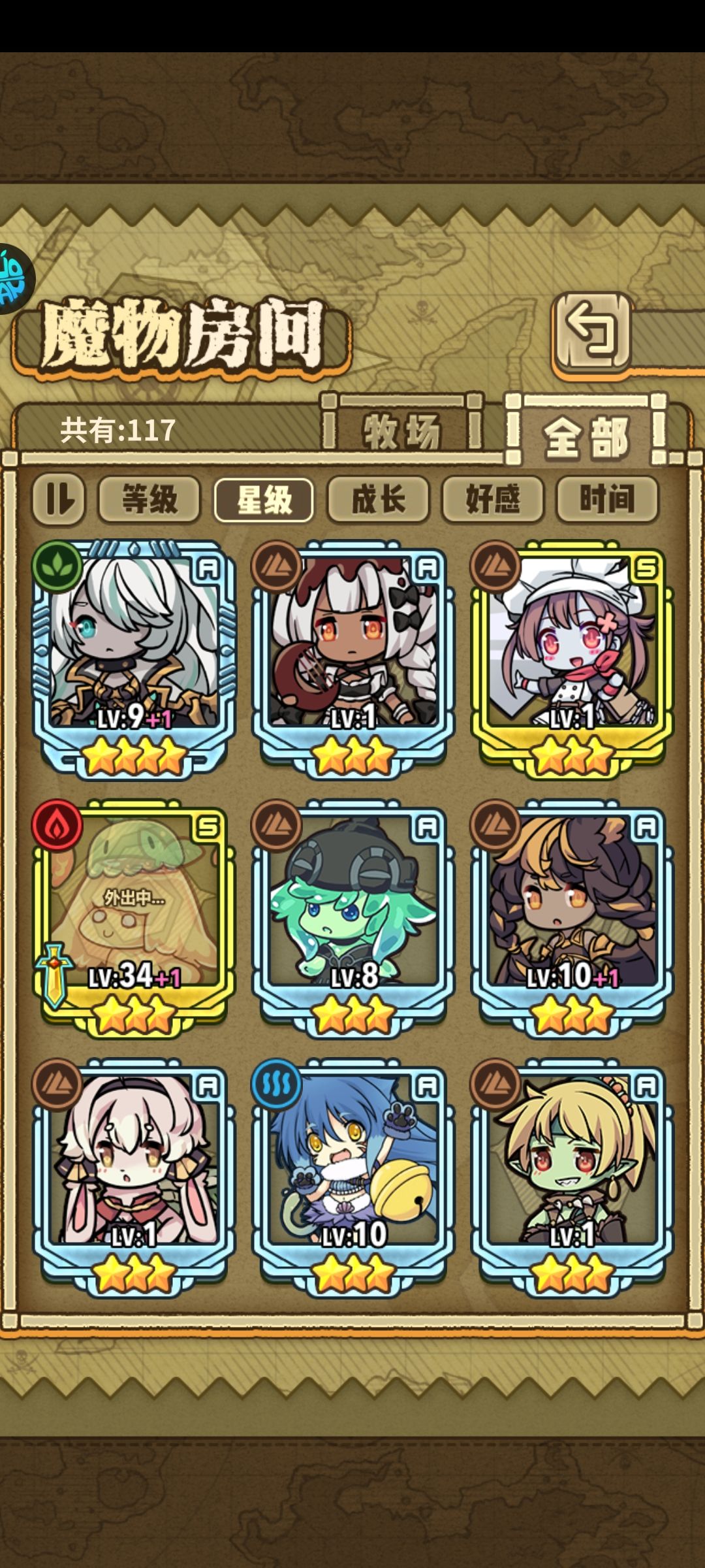 好像是凑齐了一队角色成就领的,孵出来资质不太行,一星四个属性的史莱姆皮肤也集齐了了,配队怎么配才能自动挂机过图过的很舒服啊,好多时候都是其它角色挂了但剩个小马手操过的,还有那个小龙女薇薇的第二形态怎么样,感觉比吹风治疗的那个强点立绘也好看很多啊