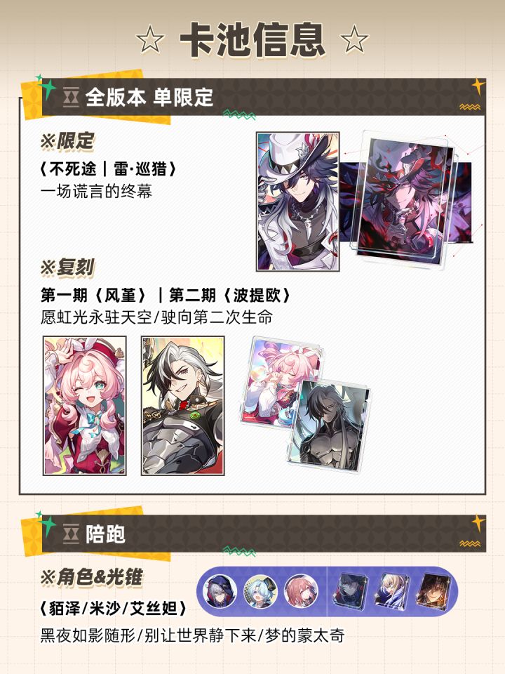 最重要的消息就是:下版本是特殊的28天版本,不死途将全版本UP哦!