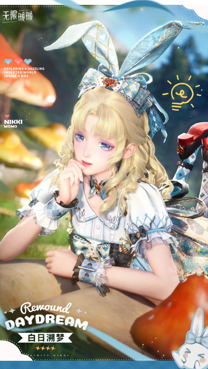 茶壶、无厚度纸牌这些小细节,也让整套时装的氛围感更完整,没有单纯走甜妹路线,多了点奇幻故事感。