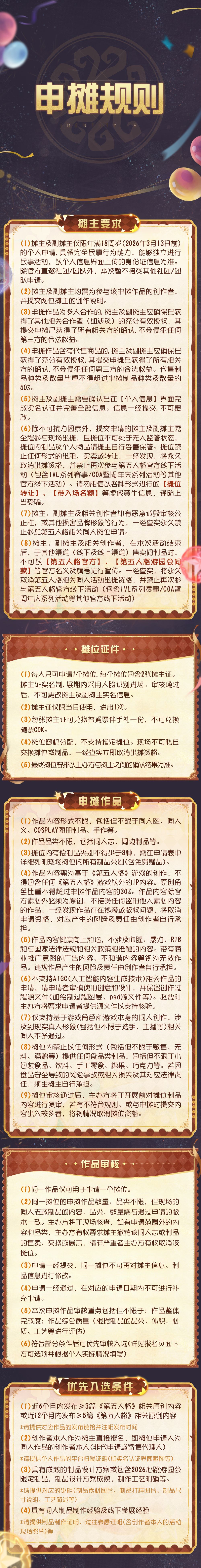 本届第五人格心跳·游园会嘉年华同人摊位申请为免费申请、按时段申请;
