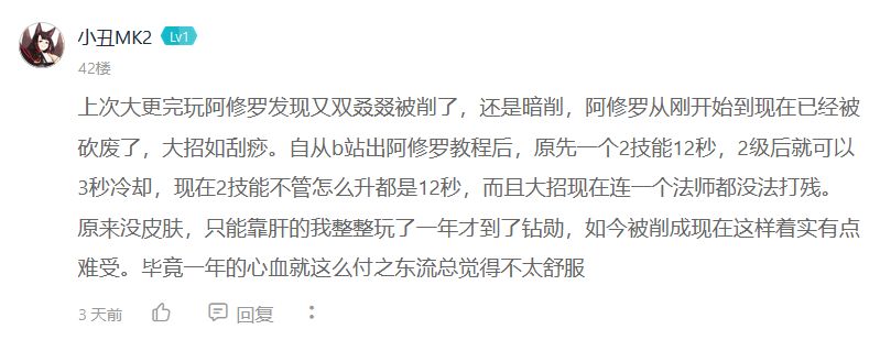 我们无意削弱阿修罗,她的表现一直不错,但是现在阿修罗的强度确实偏低了,所以我们会在下个月针对性的进行一些调整来解决这个问题。