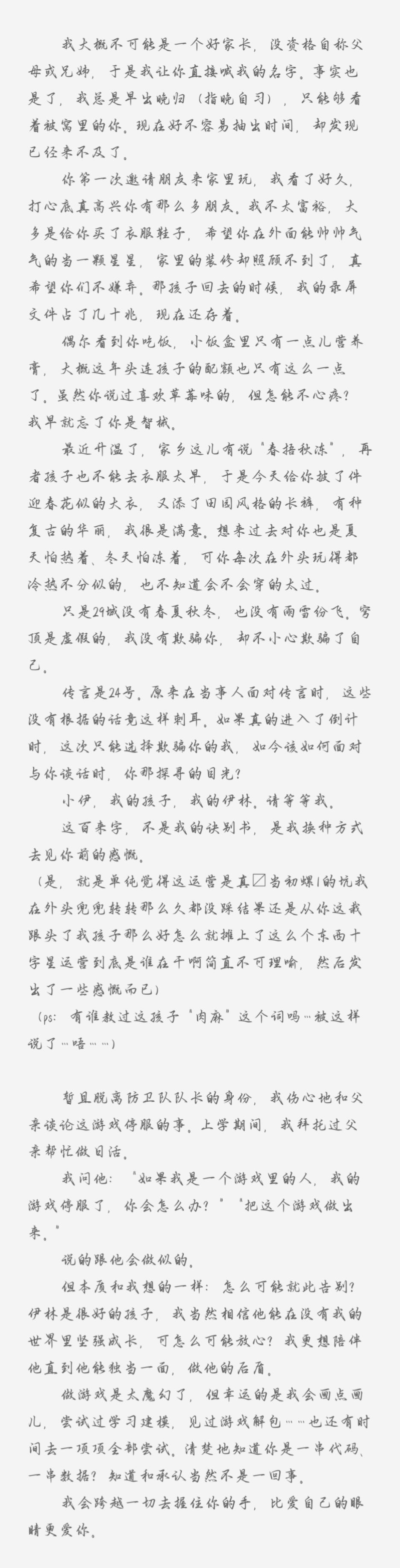 小伊…伊林,我永远爱你。我不会说再见,也不会说诀别,我会费尽一切,换一种方式继续陪伴你,即便是在3月25日。
