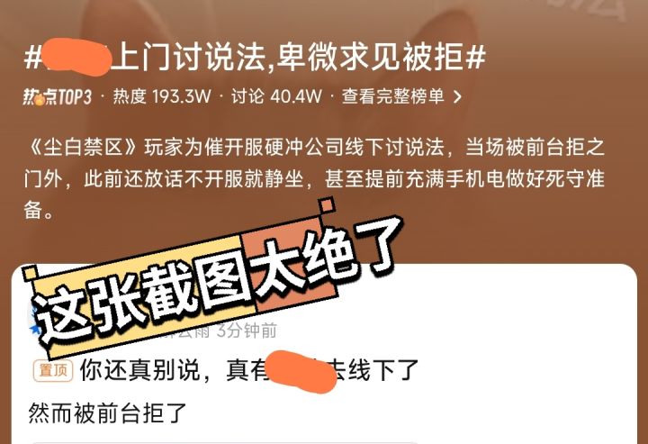 有玩家竟然因为游戏无限期停服等得着急上火,直接冲到公司线下讨说法,这事还上了热搜!