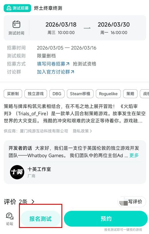 现在前往游戏详情页报名参与测试,填写招募问卷就有机会获得测试资格!