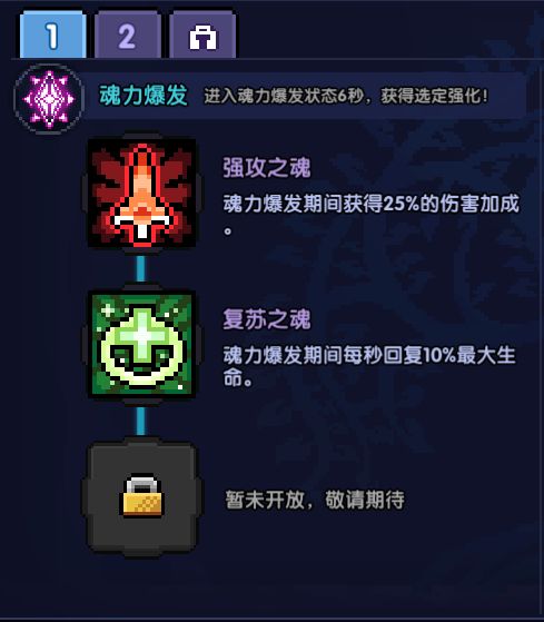 当总魂力达到一定值后,可以解锁魂力爆发技能,战斗中使用魂力爆发技能后,可以获得6秒爆发效果,爆发效果由勇者自行选择。