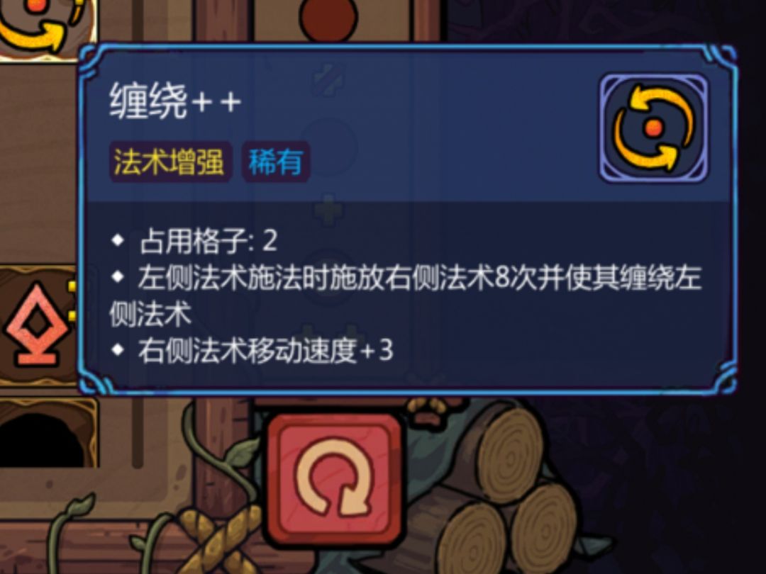 效果为左侧法术施法时施放右侧法术3/5/8次并缠绕左侧法术