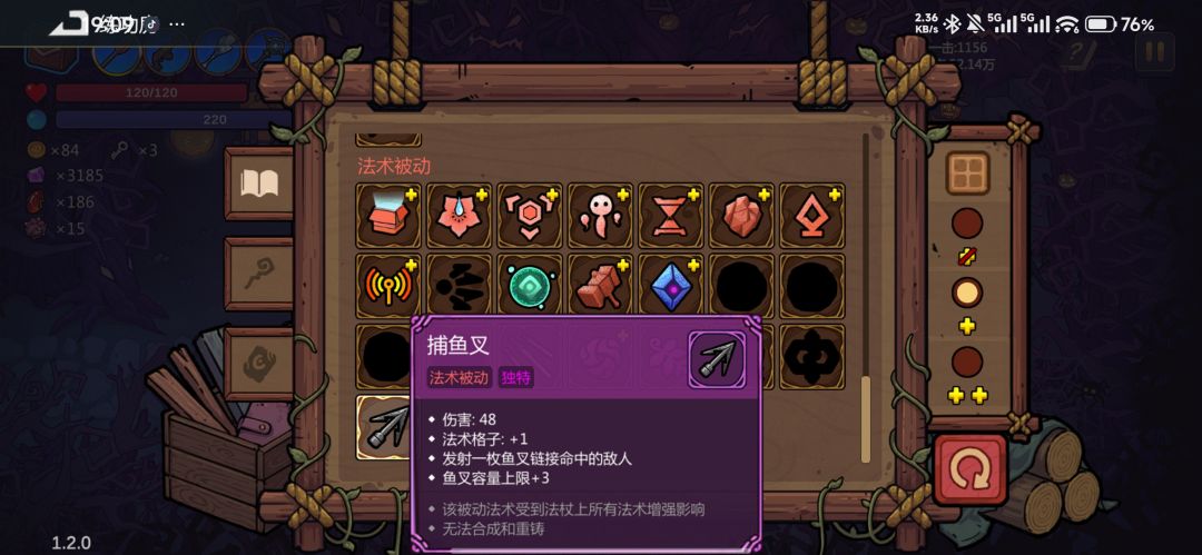 捕鱼叉:法术被动,伤害48,法术格子1,自带格子1,发射一枚鱼叉链接命中的敌人