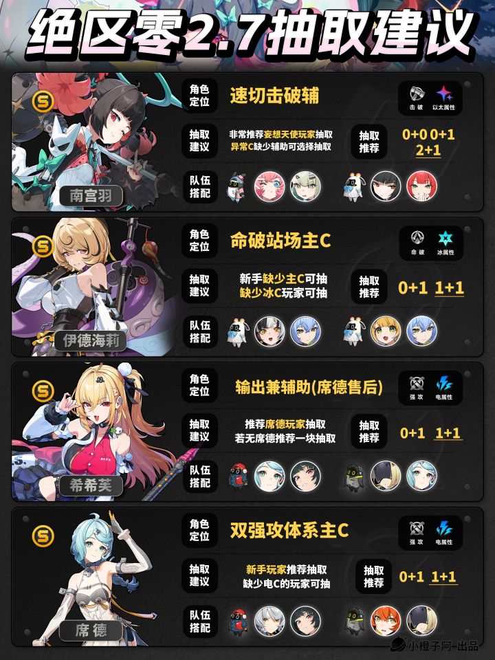 大家好!这里是小橙子阿! 这一篇是2.7版本S级UP角色的抽取指南,小伙伴们可根据指南选择是否抽不抽。