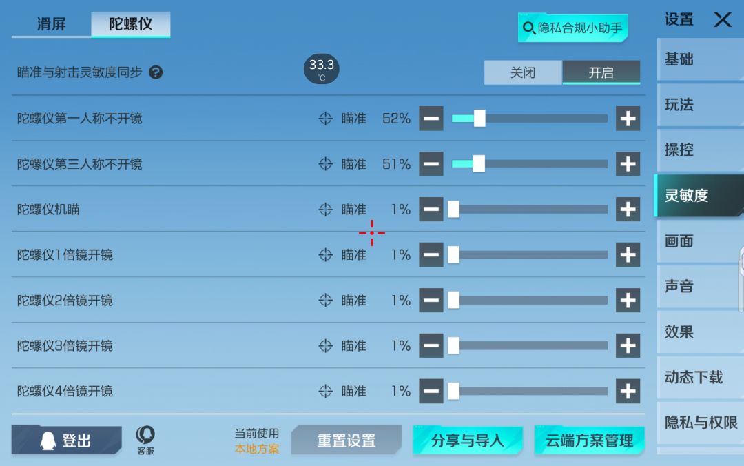 有没有大佬帮我看一下 我不习惯陀螺仪遥来遥去的 但是又想要达到相同的效果 所以把灵敏度拉满了但是最近我感觉灵敏度以经无法满足我的需求了 所以想用少量的陀螺仪辅助 在打开后腰射和滑铲确实好了很多但是各种开镜射击根本拉不动描不准 我应该要怎么调整。