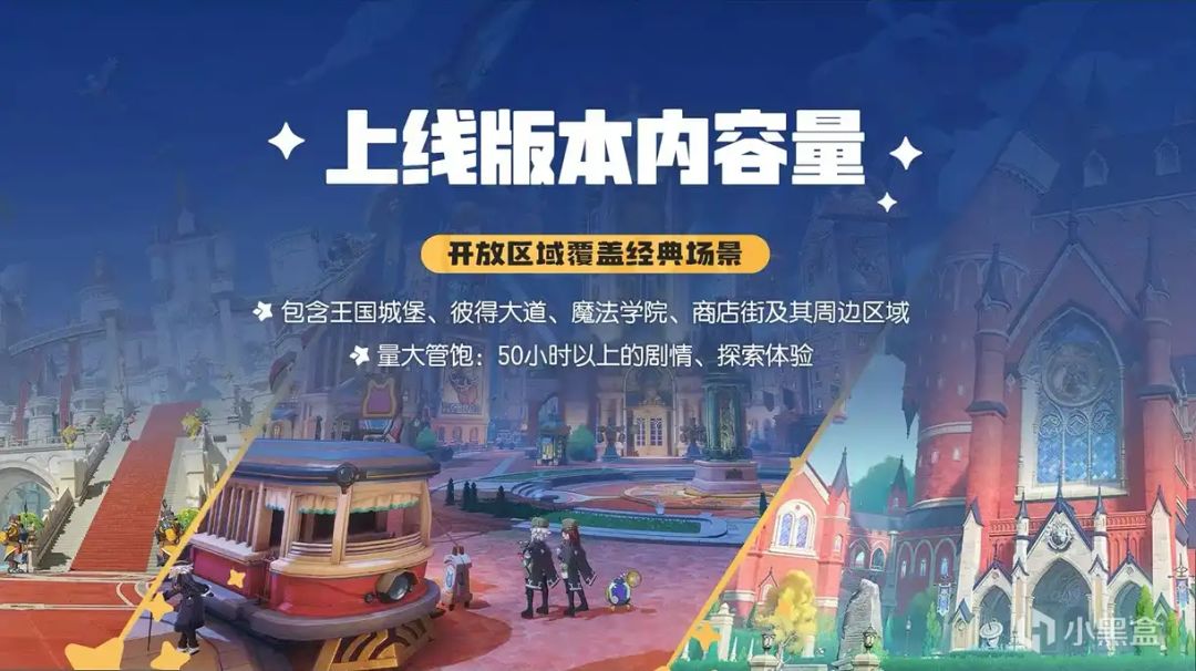 首版本上线区域包含王国城堡、彼得大道、魔法学院、商店街及其周边区域,同时会有50小时以上的剧情、探索体验