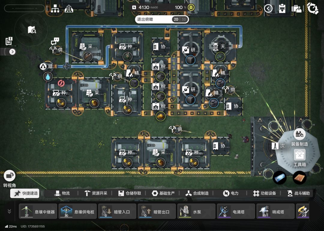 按照b站上的流程,基建的布置暂时成这样,后续如果有新的物品或者设施将会对其进行改进。其实终末地的基建还好,只要在网上抄蓝图,按照要求布置就行