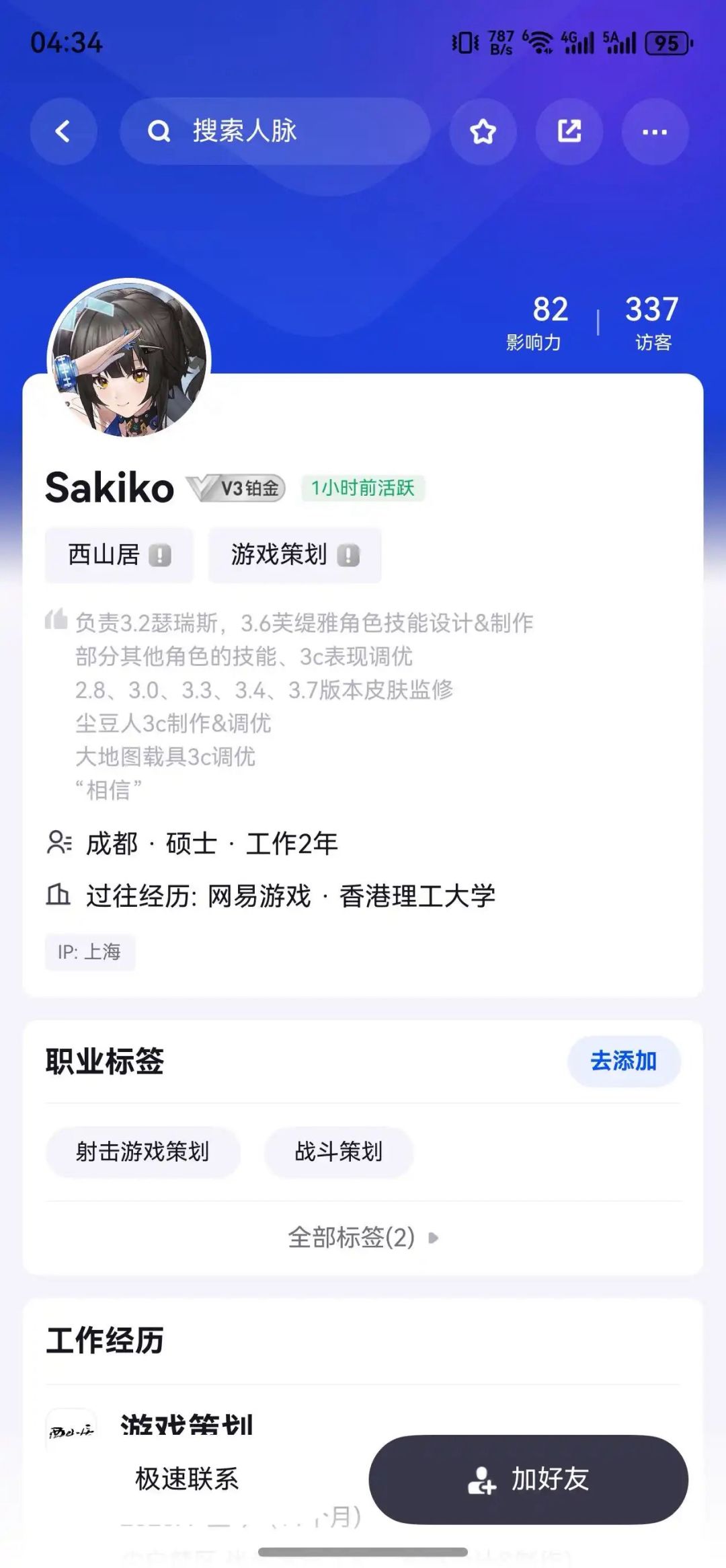 就拿这个图举例,这个网名叫“sakiko”的员工,就是西山居的游戏ch。