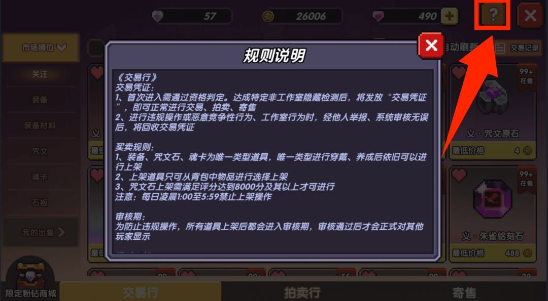 选中物品后就可以输入数量和价格进行出售了,出售装备,咒文,魂卡这类会消耗交易次数,每人每周有交易上限,具体数量可以看左上角问号。